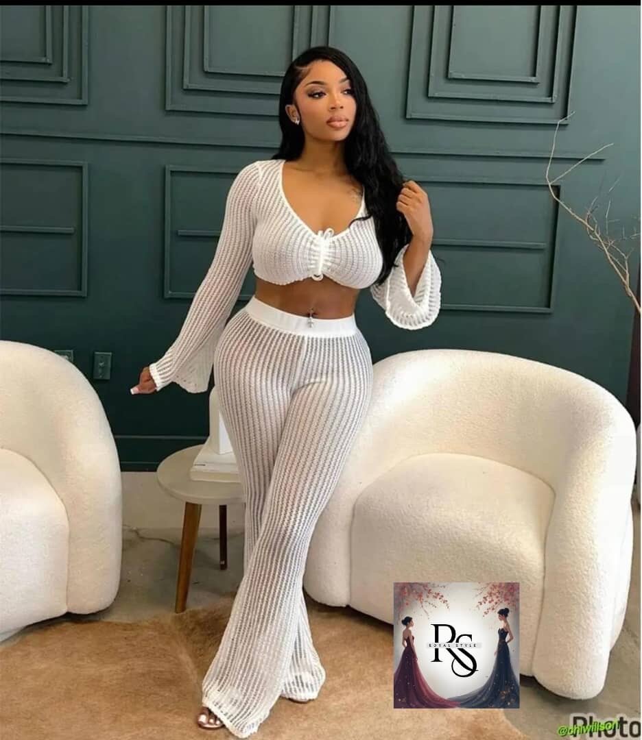 Ensemble deux pièces tricoté blanc, idéal pour des journées décontractées et élégantes. Confortable et stylé, parfait pour la maison ou une sortie entre amis.