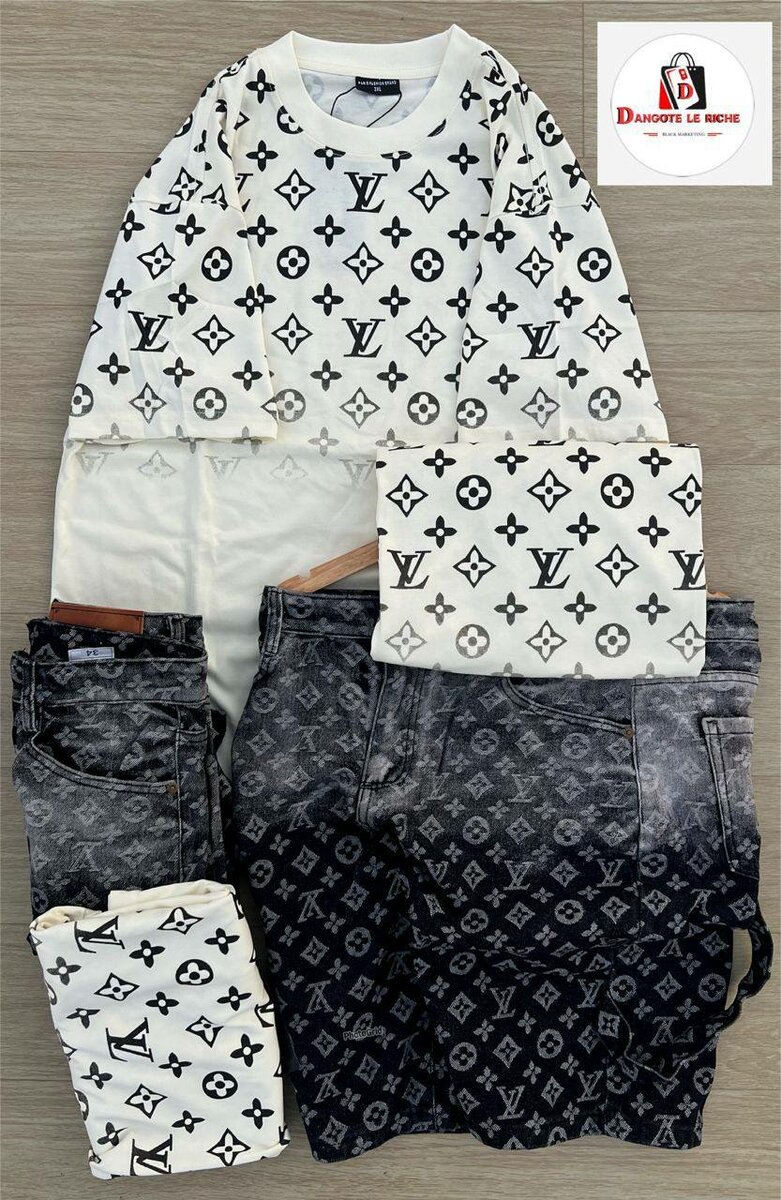Plongez dans la mode urbaine avec cet ensemble T-shirt à motifs et jean assorti. Parfait pour un look décontracté mais élégant, idéal pour les sorties entre amis ou les journées en ville.