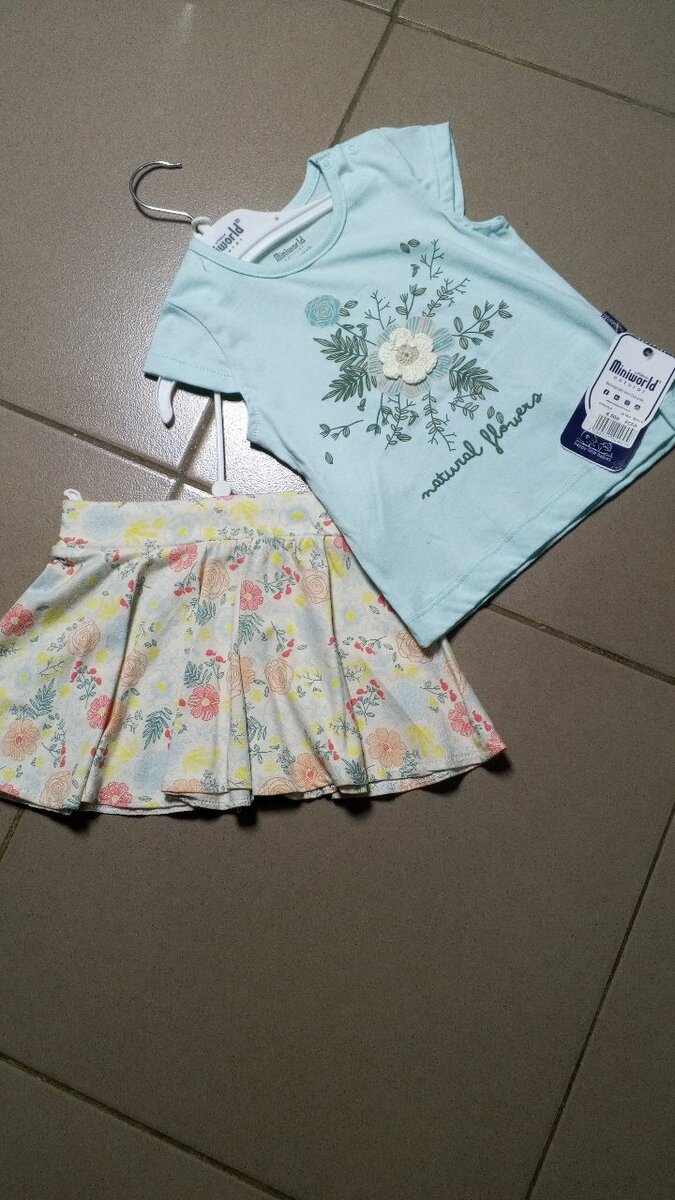 Découvrez cet adorable ensemble pour filles comprenant un T-shirt à manches courtes avec imprimé floral et une jupe assortie. Parfait pour les journées ensoleillées, il offre confort et style à votre petite princesse. Idéal pour les sorties estivales.
