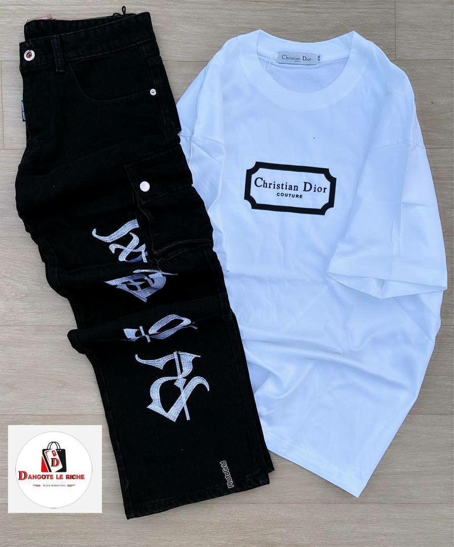 Offrez-vous cet ensemble stylé composé d'un T-shirt Dior et d'un pantalon moderne. Parfait pour un look élégant et décontracté. Idéal pour les sorties en ville ou les soirées entre amis.