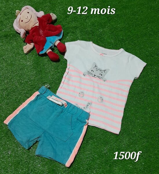 Tenue pour une fille, T-shirt + short, 9-12 mois