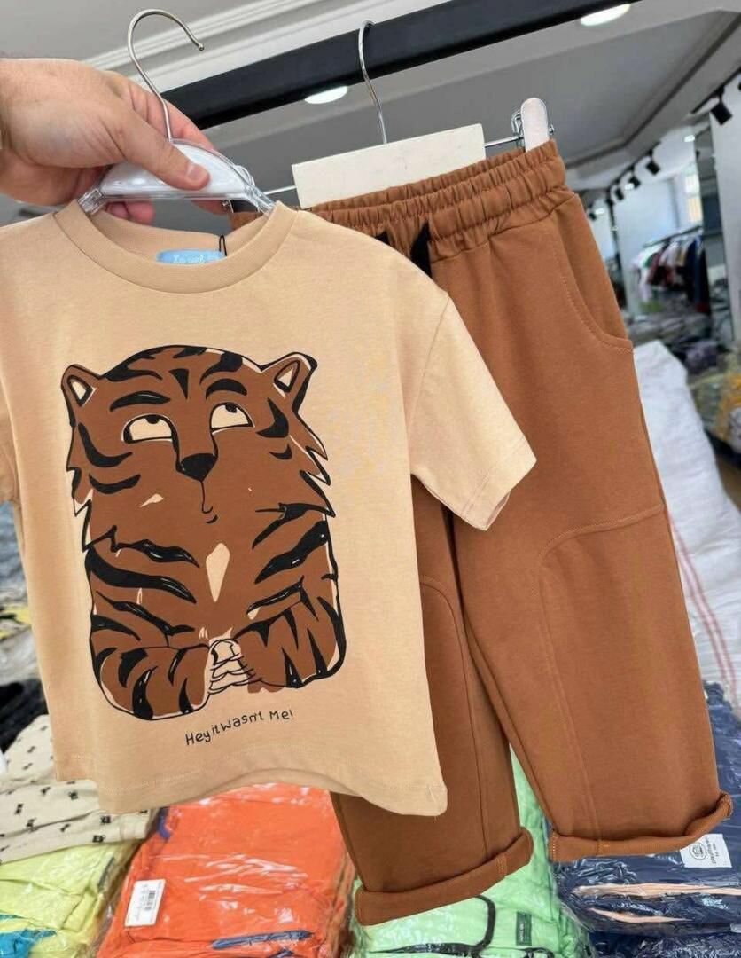 Charmant ensemble pour enfants avec T-shirt à motif tigre et pantalon confortable. Idéal pour le jeu et les sorties, offre style et confort.
