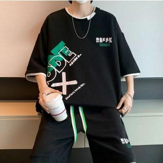 Portez un style unique avec cet ensemble t-shirt et short décontracté noir. Fabriqué en matériau confortable, il est idéal pour une tenue quotidienne tendance. Parfait pour les sorties entre amis ou pour se détendre à la maison.