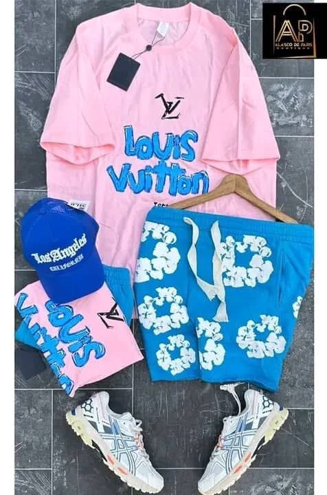 Craquez pour cet ensemble coloré comprenant un T-shirt rose et un short bleu. Idéal pour un look estival tendance, il allie confort et style. Parfait pour une sortie décontractée ou un rendez-vous entre amis. Associez-le avec des baskets pour un look complet !