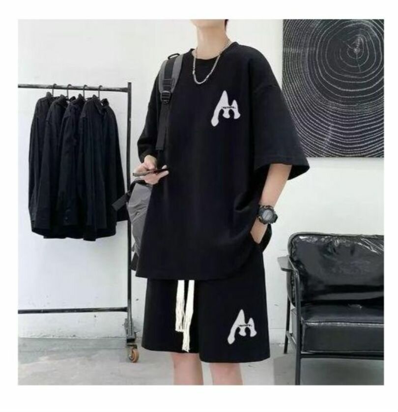 Ensemble mode pour homme composé d'un T-shirt et d'un short en coton. Idéal pour les activités décontractées, cet ensemble est confortable et élégant. Parfait pour les hommes qui cherchent un style simple et moderne.