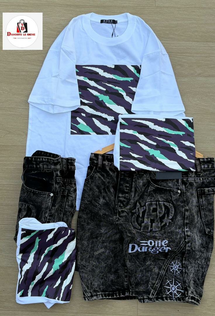 Adoptez un look tendance avec cet ensemble streetwear composé d'un T-shirt imprimé audacieux et d'un short en denim. Parfait pour un style urbain et décontracté. Idéal pour les sorties entre amis ou les journées détendues en ville. Combinez confort et style avec cet ensemble incontournable.