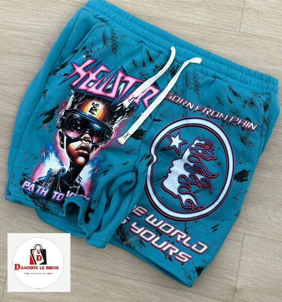 Ensemble moderne et branché, parfait pour les amoureux de la mode urbaine. T-shirt et short avec imprimés graphiques audacieux. Confort et style pour vos sorties décontractées.