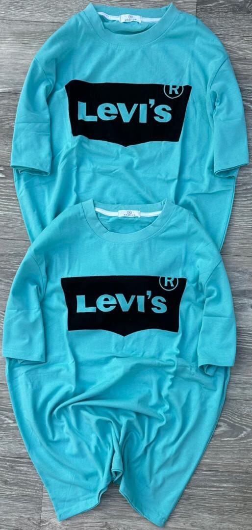 Ensemble coordonné pour adulte et bébé avec t-shirt Levi's. Conçu pour des moments de complicité. Disponible en différentes couleurs : blanc et bleu. Confortable et facile à porter.