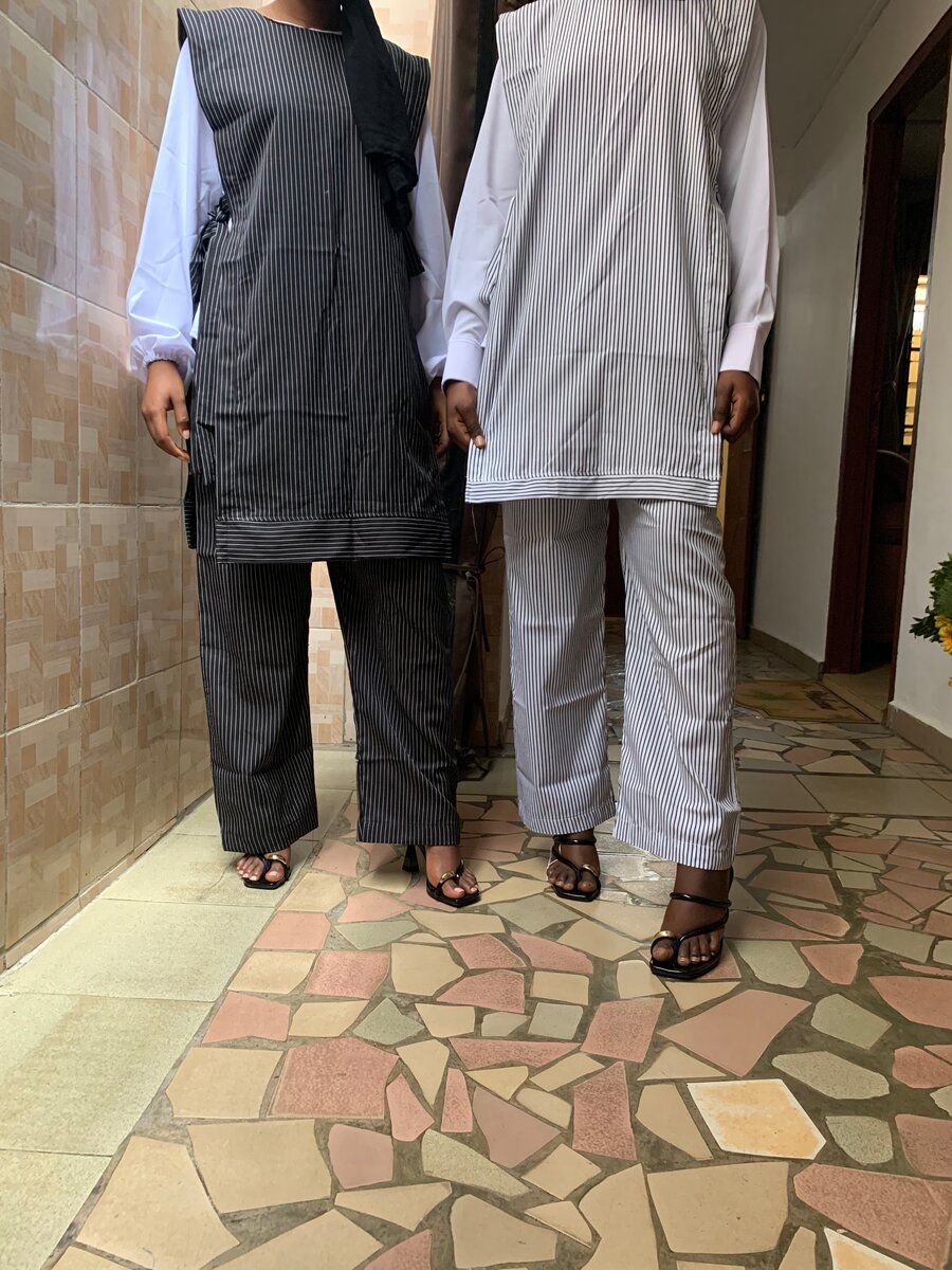 Élégant ensemble tunique et pantalon rayé, parfait pour un look chic et confortable. Conçu avec des lignes épurées, idéal pour le travail ou les sorties décontractées. Associe style et confort avec son tissu léger et respirant. Un choix polyvalent pour toute garde-robe.