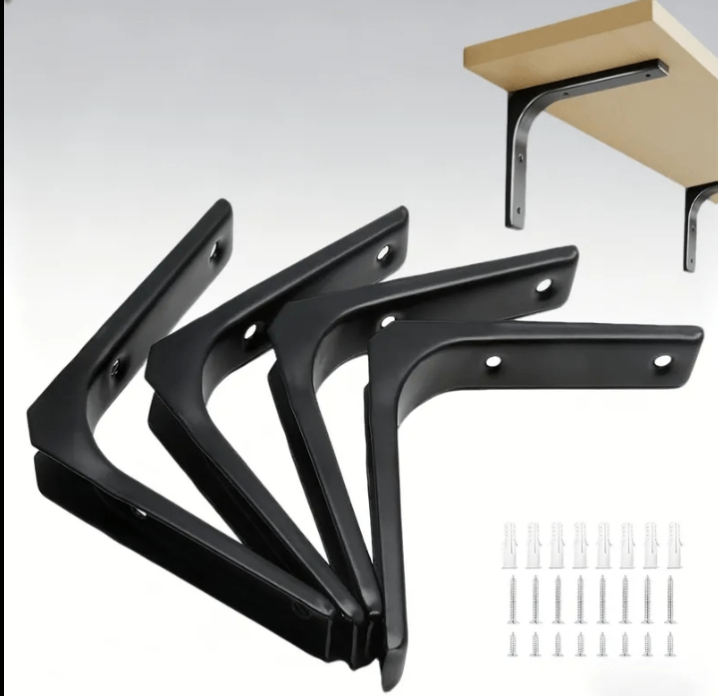 Équerre de support pour étagère murale en métal, robuste et durable. Facile à installer avec vis et chevilles. Idéal pour créer des étagères flottantes dans votre maison ou bureau.