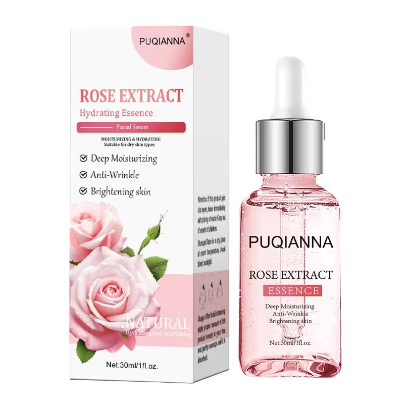 Découvrez l'essence hydratante à l'extrait de rose, idéale pour une peau lumineuse et sans rides. Formule nourrissante pour toutes types de peau. 30ml.