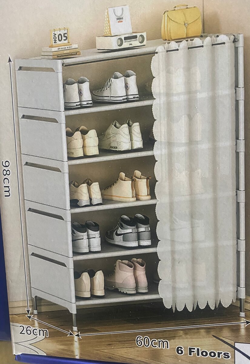 Maximisez votre espace avec cette étagère à chaussures à 6 niveaux, idéale pour organiser jusqu'à 24 paires. Conception robuste et couverture en tissu pour protéger de la poussière. Parfaite pour l'entrée, le dressing ou la chambre.