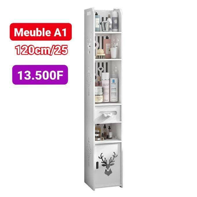 Maximisez votre espace avec cette étagère haute élégante. Idéale pour la salle de bain, elle offre un rangement optimal grâce à ses étagères polyvalentes. En blanc chic, elle s'adapte à tout décor moderne.