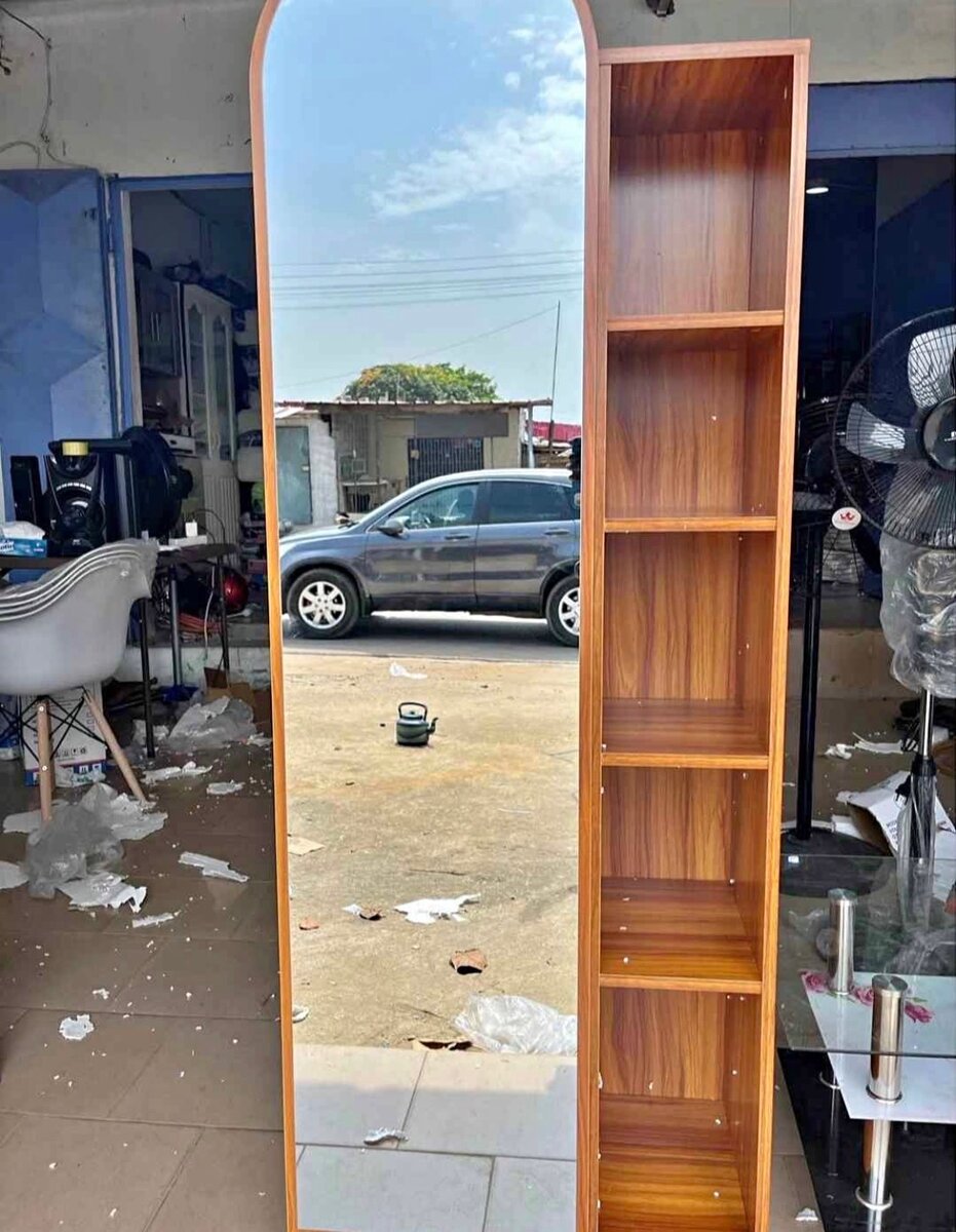 Étagère en bois avec compartiments et miroir, idéale pour la décoration et le rangement. Fabriquée en bois de qualité, elle offre un espace de stockage et un élément décoratif élégant pour votre intérieur.