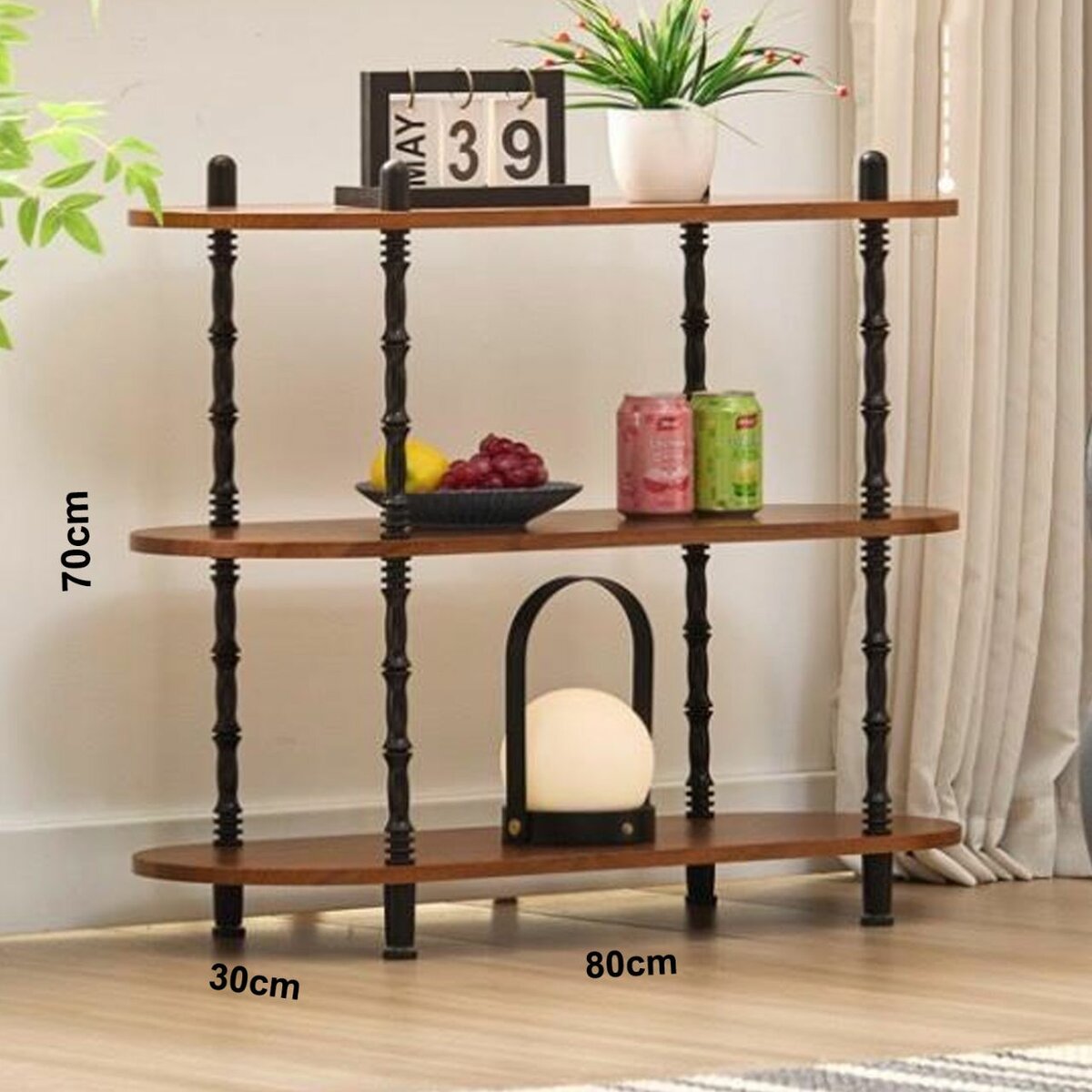 Étagère moderne en bois et métal noir, idéale pour décorer votre salon ou bureau. Design élégant et robuste, parfait pour exposer plantes, décorations et objets de décoration.