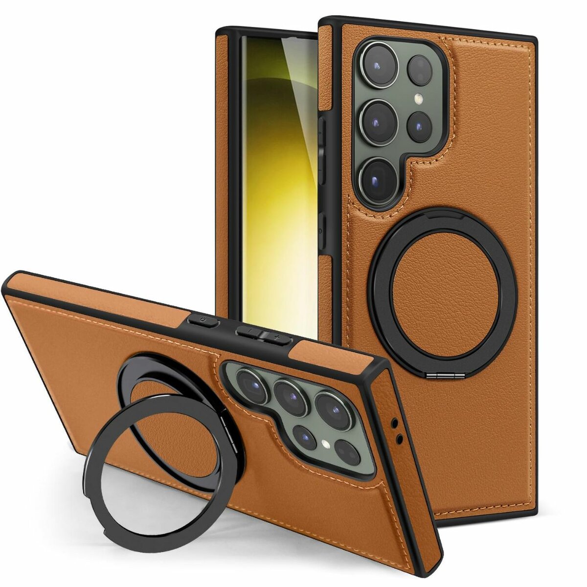 Étui de protection luxueux avec support rotatif à 360° pour Galaxy S22 Ultra - Marron