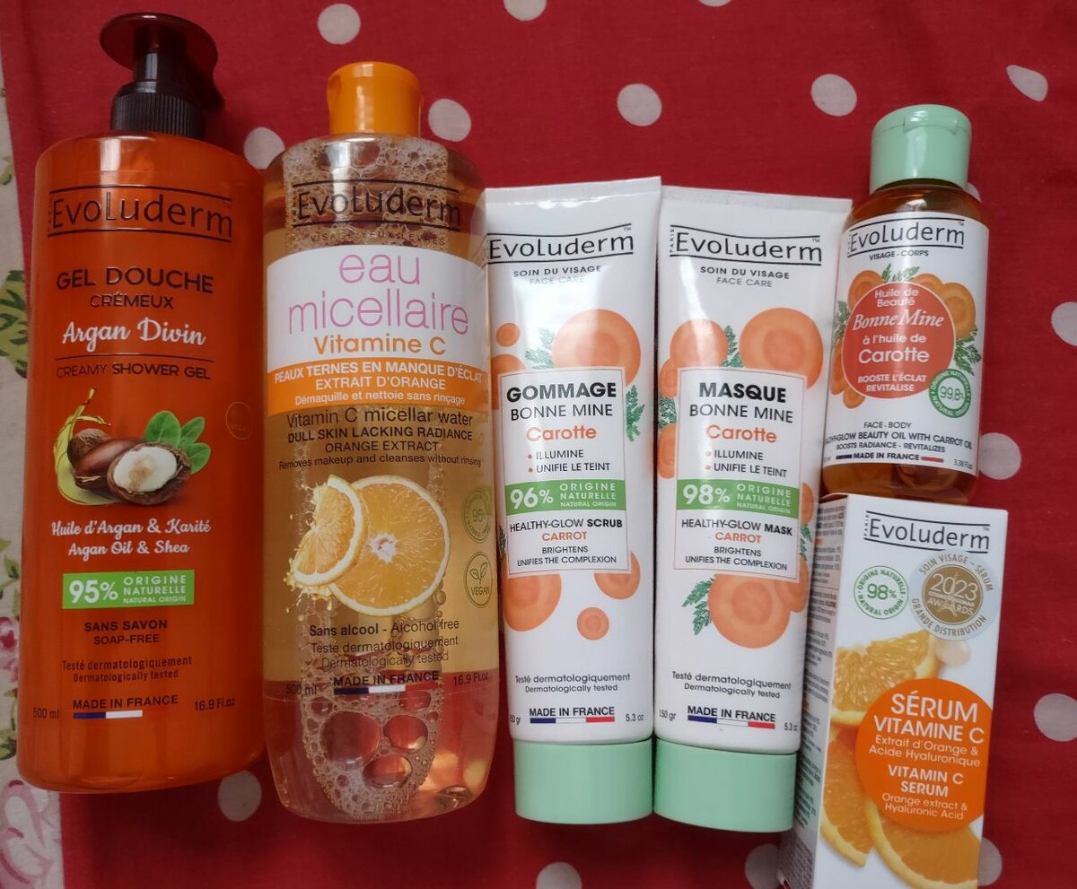 Découvrez la gamme Evoluderm enrichie en Vitamine C pour une peau éclatante. Comprend gel douche, eau micellaire, gommage, masque et sérum pour un soin complet. Parfait pour revitaliser et illuminer votre visage. Fabriqué en France, 95-98% d’origine naturelle.