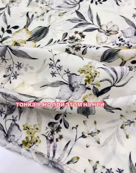 100% вискозное полотно, обладающее самыми важными свойствами: воздухопроницаемость, гигроскопичность, гипоаллергенность. Мягкая, нежная ткань для самых красивых весенне-летних нарядов😍