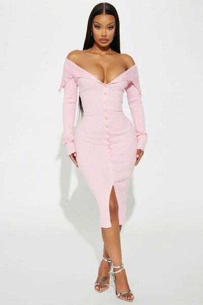 Ribbed Top Ring Front Cut Out Dress(Thrift)