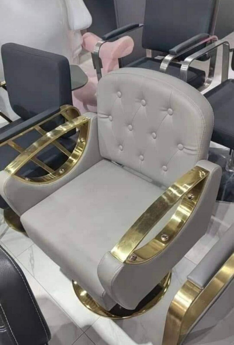 Découvrez notre fauteuil de barbier haut de gamme, conçu pour offrir confort et style. En cuir gris de qualité supérieure, avec des accents dorés élégants. Réglable et robuste, idéal pour les salons de coiffure et barbiers. Conçu pour une expérience client exceptionnelle.