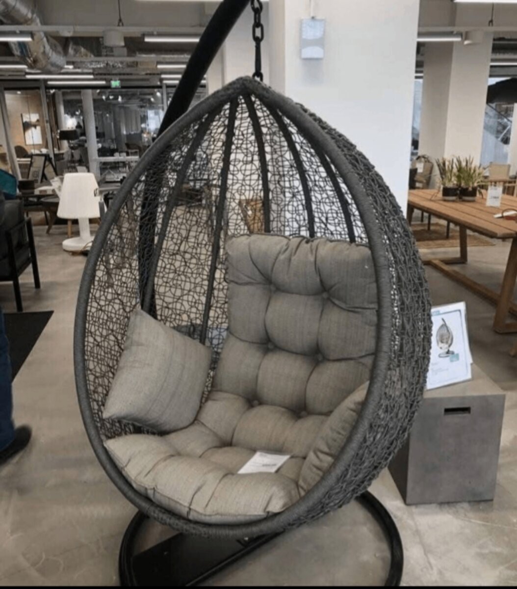 Découvrez notre fauteuil suspendu en rotin gris, idéal pour créer un coin détente dans votre jardin ou salon. Conçu pour un confort optimal, ce modèle est parfait pour se relaxer. Coussins en tissu gris confortables.