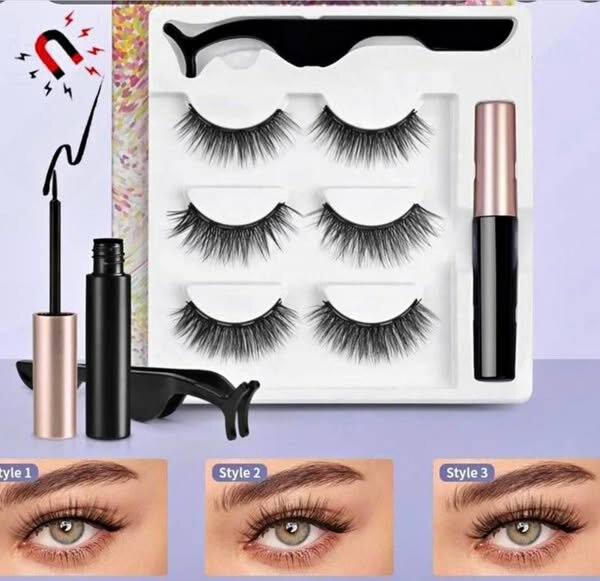 Faux cils magnétique avec le eye-liner magnétique facile à poser 5paires réutilisables chacune plus de 15 fois Modèles courts moyens et discret