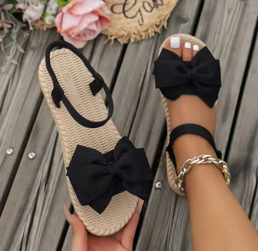 Femmes sandales 2025 nouveau été sandales légères mode plage pantoufles décontractées en plein air nœud papillon chaussures plates maison plate-forme sandales