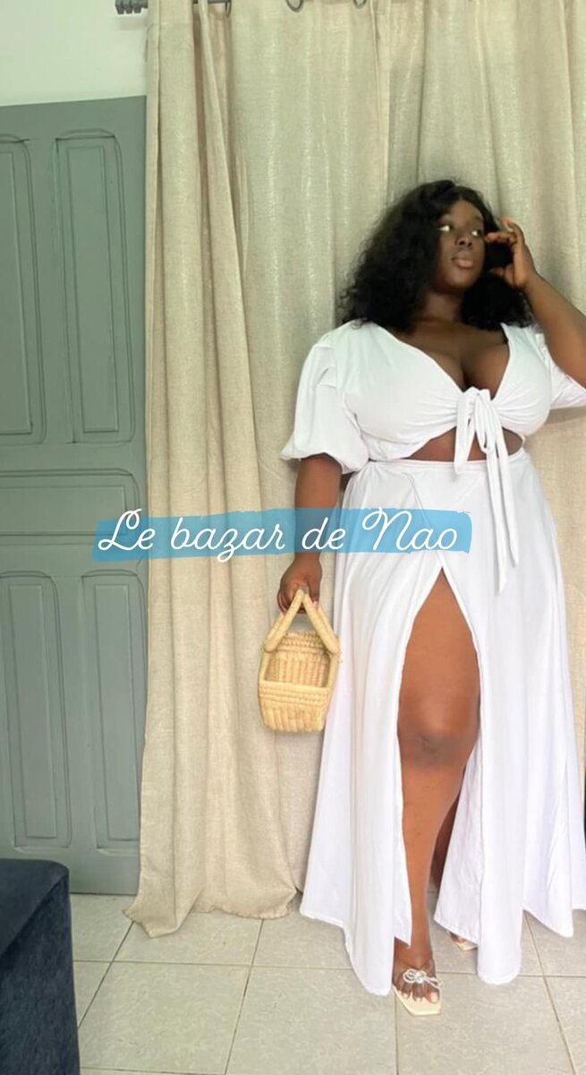 Femmes blanc ensemble, top et jupe longue