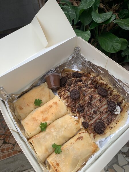Découvrez notre grand bol de 10 crêpes fettuccine garnie de chocolat fondant nutella et d'un savoureux biscuit Oreo.