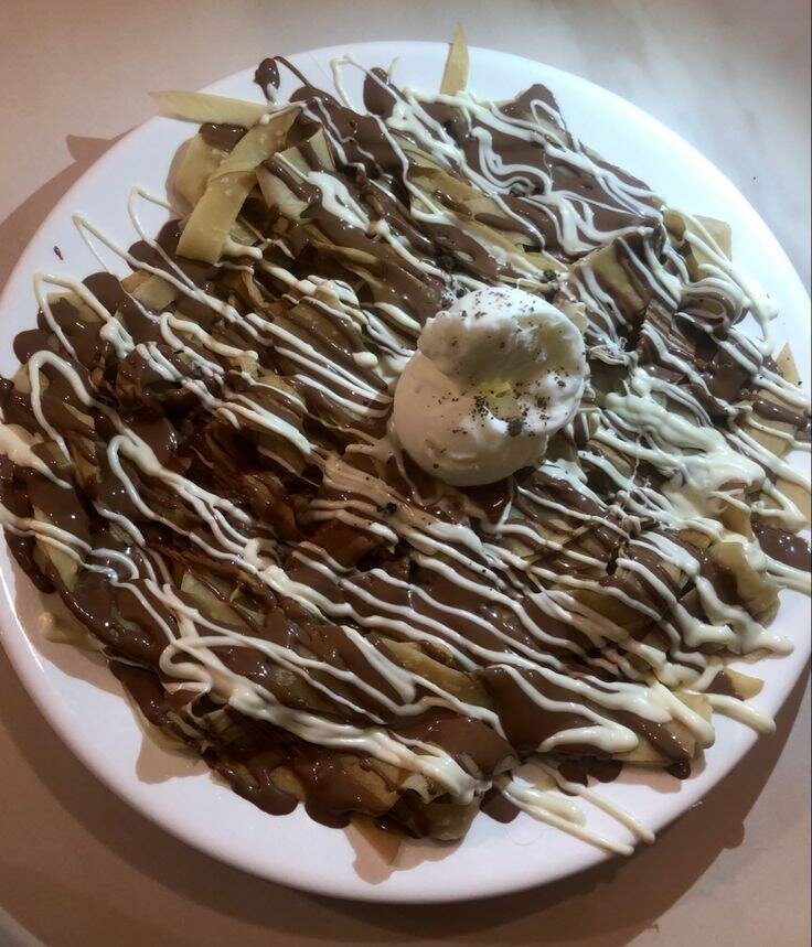 Découvrez ces délicieuses crêpes nappées de chocolat riche, garnies de touches de chocolat blanc et couronnées d'une boule de glace. Une expérience gourmande parfaite pour les amoureux du chocolat ! Idéales pour les desserts familiaux, les fêtes ou une douce pause sucrée de l'après-midi.