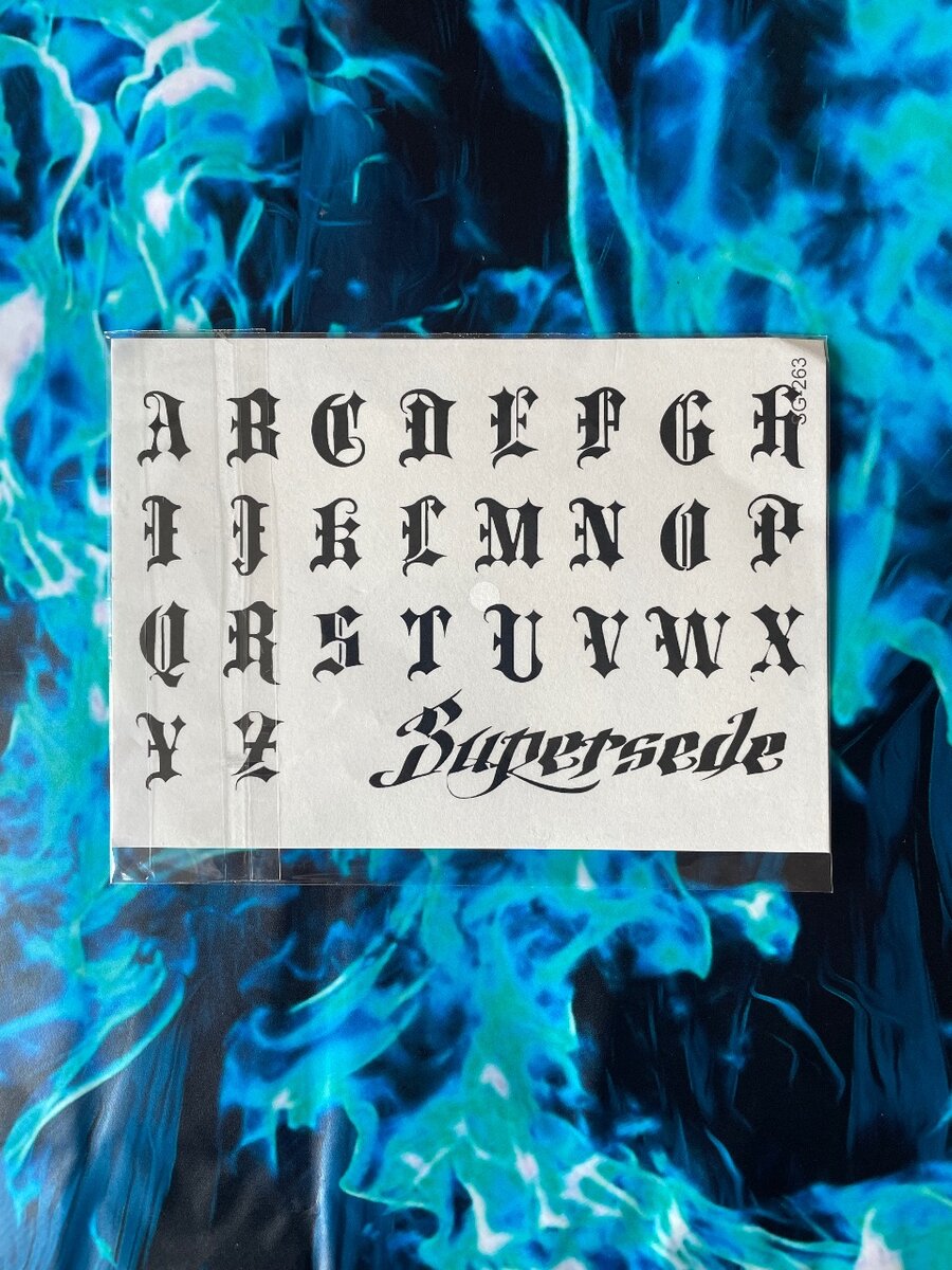 Découvrez des feuilles de tatouage temporaire avec des lettres gothiques élégantes. Idéal pour exprimer votre style unique lors d'événements spéciaux ou simplement pour s'amuser. Faciles à appliquer et à enlever, elles sont une option parfaite pour un look éphémère et tendance. Profitez de cette manière créative d'afficher votre individualité!