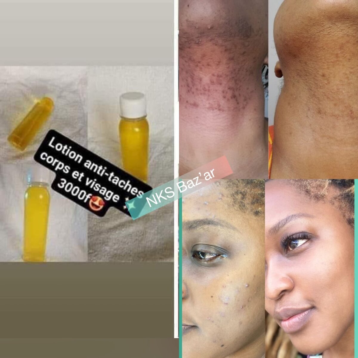Elle traite les quintaux brûlures les peaux mortes boutons les taches d'acné et celles au niveau des aisselles entre-jambes genoux et pieds coudes etc...