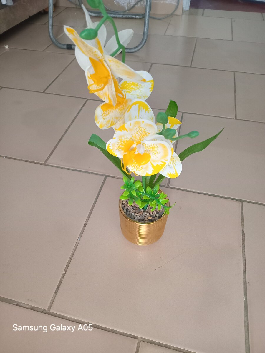 Ajoutez une touche élégante à votre intérieur avec cette magnifique orchidée artificielle en pot doré. Idéale pour décorer le salon, la cuisine ou le bureau sans entretien.