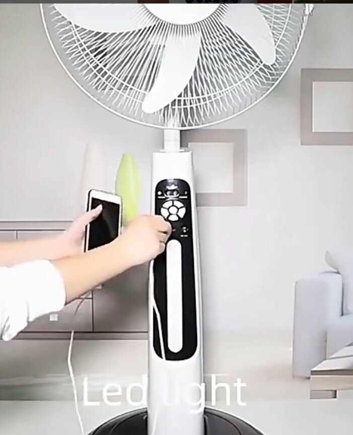 ELECTRICITY AND SOLAR RECHARGEABLE FAN 16 INCHES WITH LIGHT