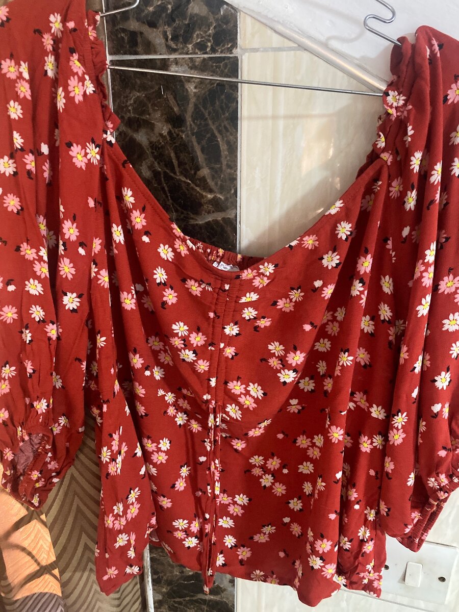 Floral front ruched flair top