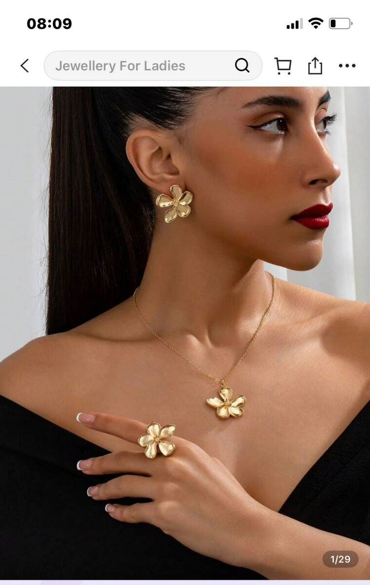 Elevate your elegance with this exquisite floral jewelry set, featuring a necklace, earrings, and ring. Perfect for adding a touch of sophistication to any outfit, this set is designed for women who appreciate fine craftsmanship and timeless beauty.