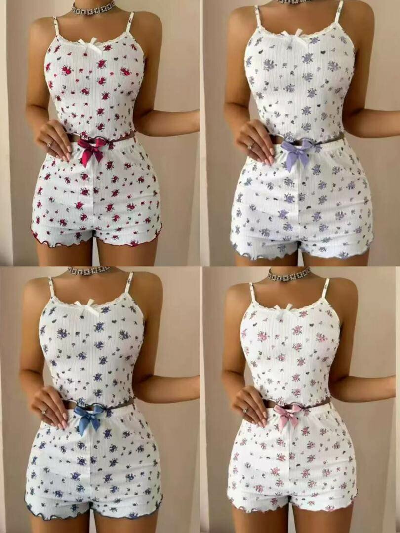 Stay cozy and stylish in this floral pajama set. Perfect for lounging or pajama parties, it features a delicate flower print and a comfy fit. Ideal for any sleepwear collection.