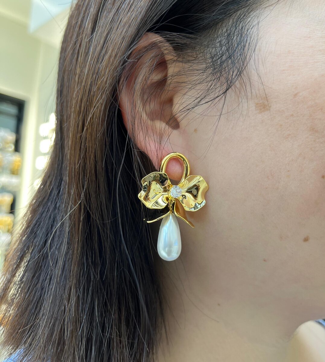 A petal like earring with a bead hanging which gives an elegant look can be worn by a bride or can be worn to a wedding