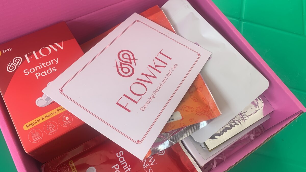 Whats in the Kit? 1 FlowWellness Sanitary Pad 1 Heat Patches 1 Feminine Wipes 1 Acne Patch 1 Face Masks 1 Lip Mask 1 Eye Masks 1 Cramp relief Tea Snacks - Chocolate