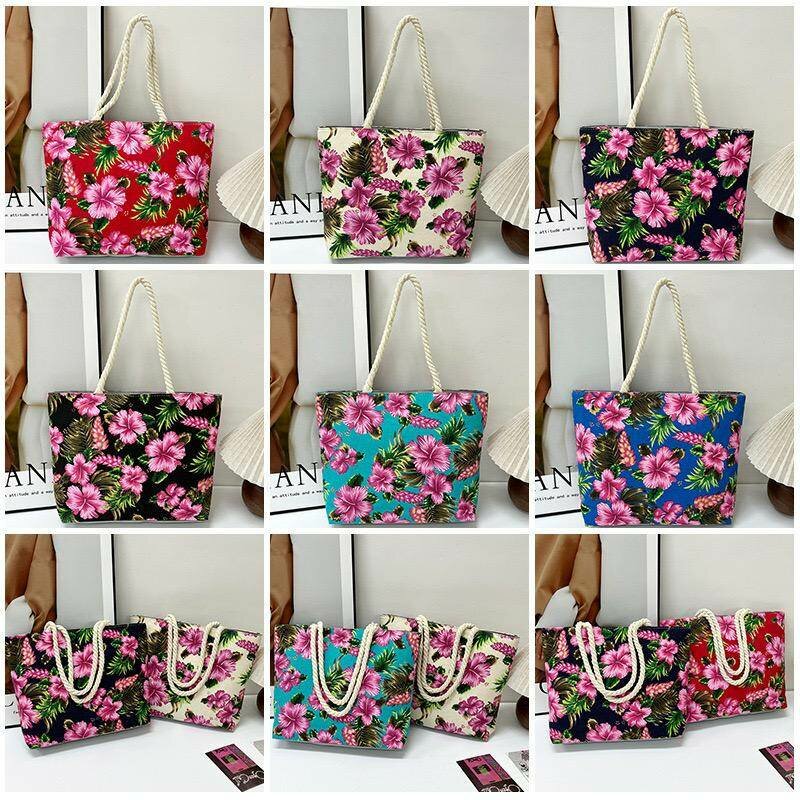 This flower patterned Tote Bag is perfect for your weekend at the beach or out of town. The wide-mouthed, durable bag holds plenty of personal items and is easily held by its thick rope handles.