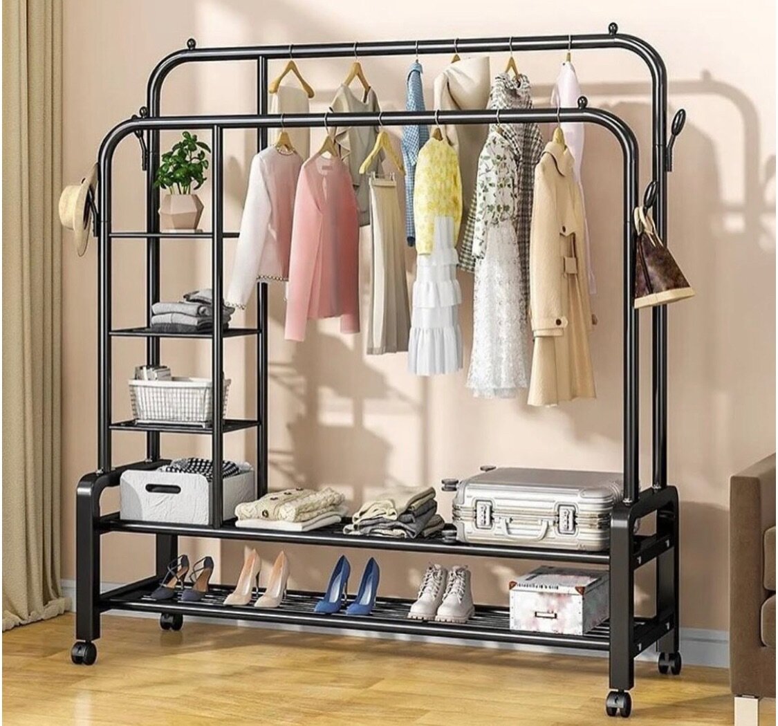 Metal Double Bar Clothes Rack With 2 Tier Shoe Rack