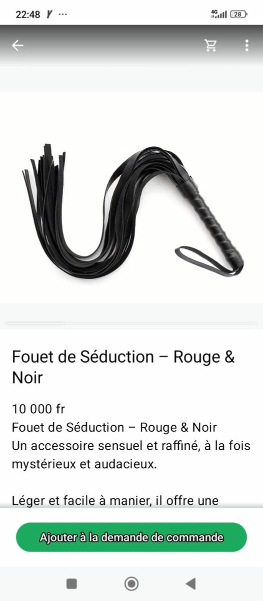 Découvrez le fouet érotique en rouge et noir, l'accessoire parfait pour explorer vos passions secrètes. Facile à manier pour des moments inoubliables. Idéal pour les couples audacieux et prêts à pimenter leurs soirées. Conçu pour éveiller les sens avec une touche d'élégance et de mystère.