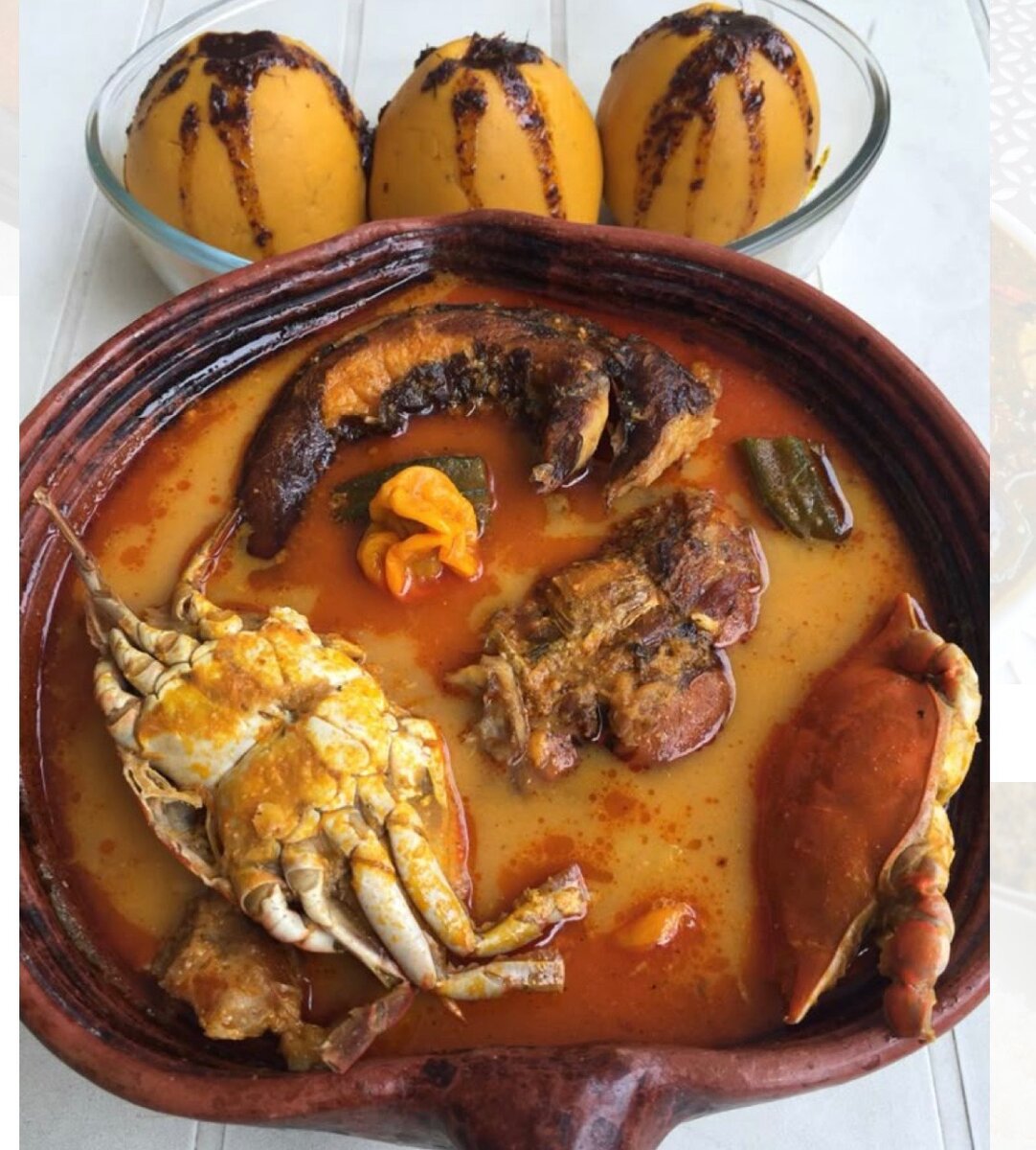 Découvrez notre foufou sauce clair avec du poisson frais entier ou la tête de bœuf fumée goût excellent