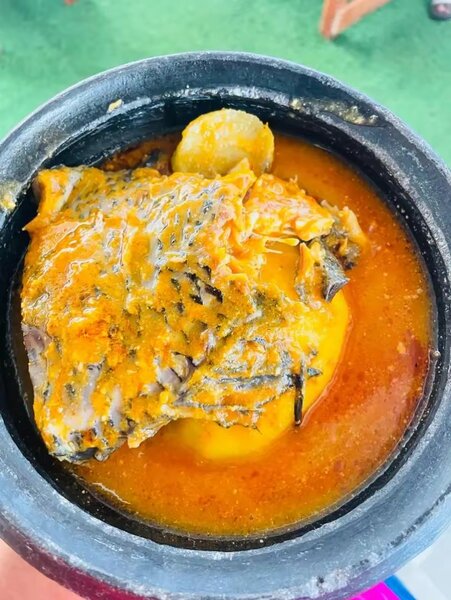 Foufou bien pilé, trempé dans une sauce claire bien parfumée avec viande ou poisson. Goût doux, texture fondante un vrai plat du village qui fait plaisir à tous les coups !