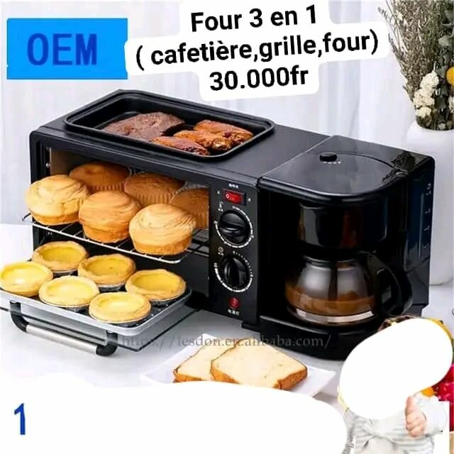 Découvrez le four 3 en 1, combinant cafetière, grille-pain et four pour une cuisine pratique et polyvalente. Idéal pour les petits déjeuners et les snacks.