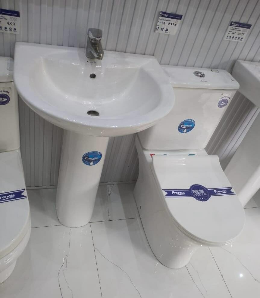 Frencia Water closet with wash hand basin & accessories.