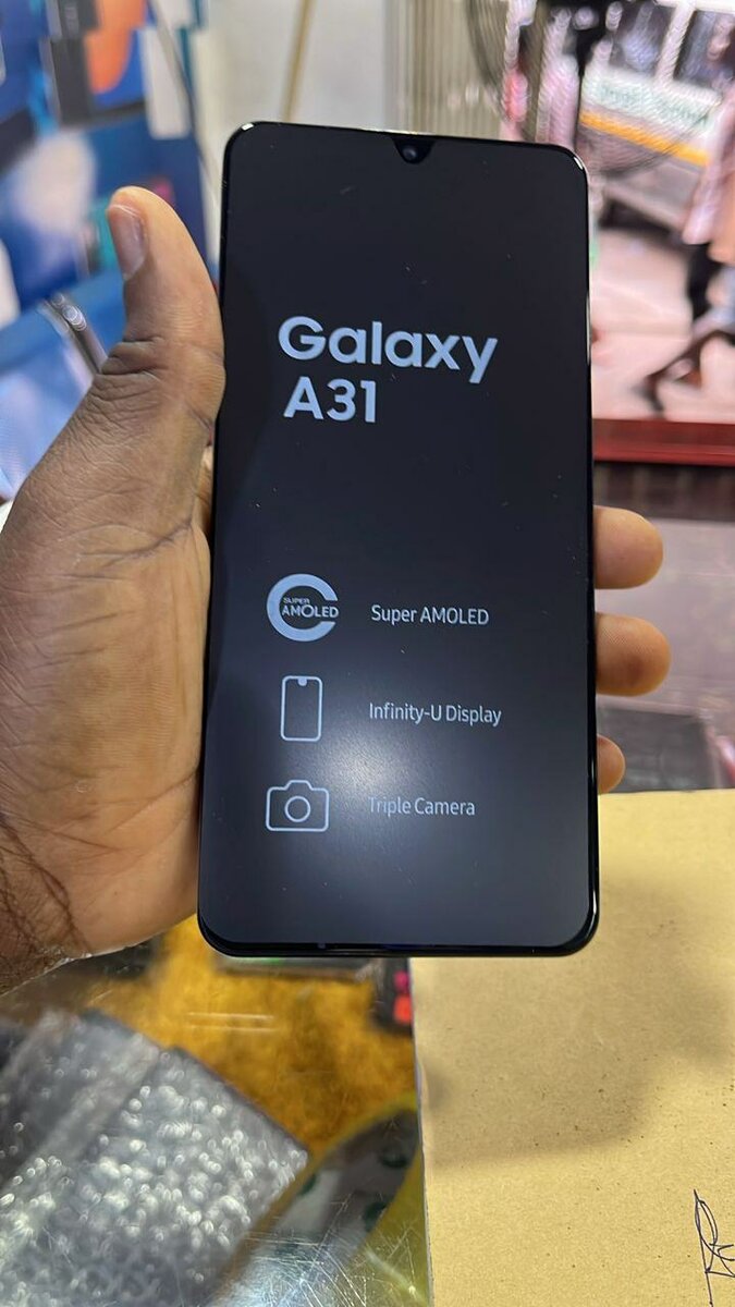 Fresh in box galaxy A31 128gb/6gb ram 2 sim fast internet speed 5000mAh battery capacity 12 months warranty call us now.