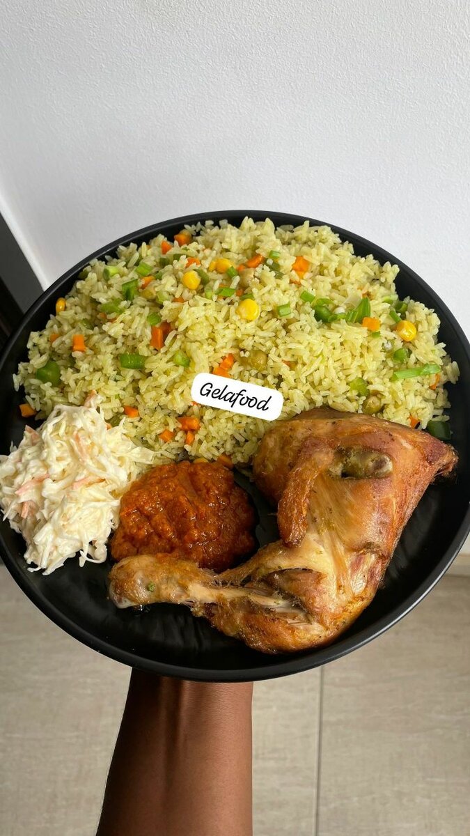 Dégustez notre délicieux riz sauté avec du poulet rôti juteux, accompagné de coleslaw frais et sauce épicée. Parfait pour un repas savoureux et équilibré, idéal pour le déjeuner ou le dîner. Ce plat est une fusion parfaite de saveurs exquises et de textures variées qui raviront vos papilles.