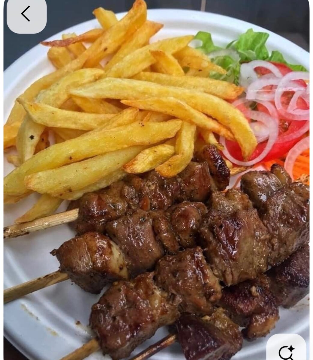 Savourez ce délicieux plat de frite brochette idéal pour un dîner réconfortant. Les morceaux de poulet tendres et épicés,Parfait pour partager en famille ou entre amis!