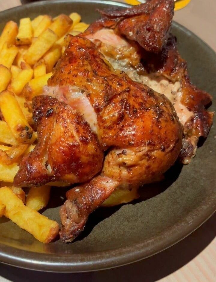 1/4 Poulet Assaisonné Aux Épices Du Cameroun + Frites De Pomme De Terre. LES PLATS SONT DISPONIBLES JUSQU'À 21HEURES